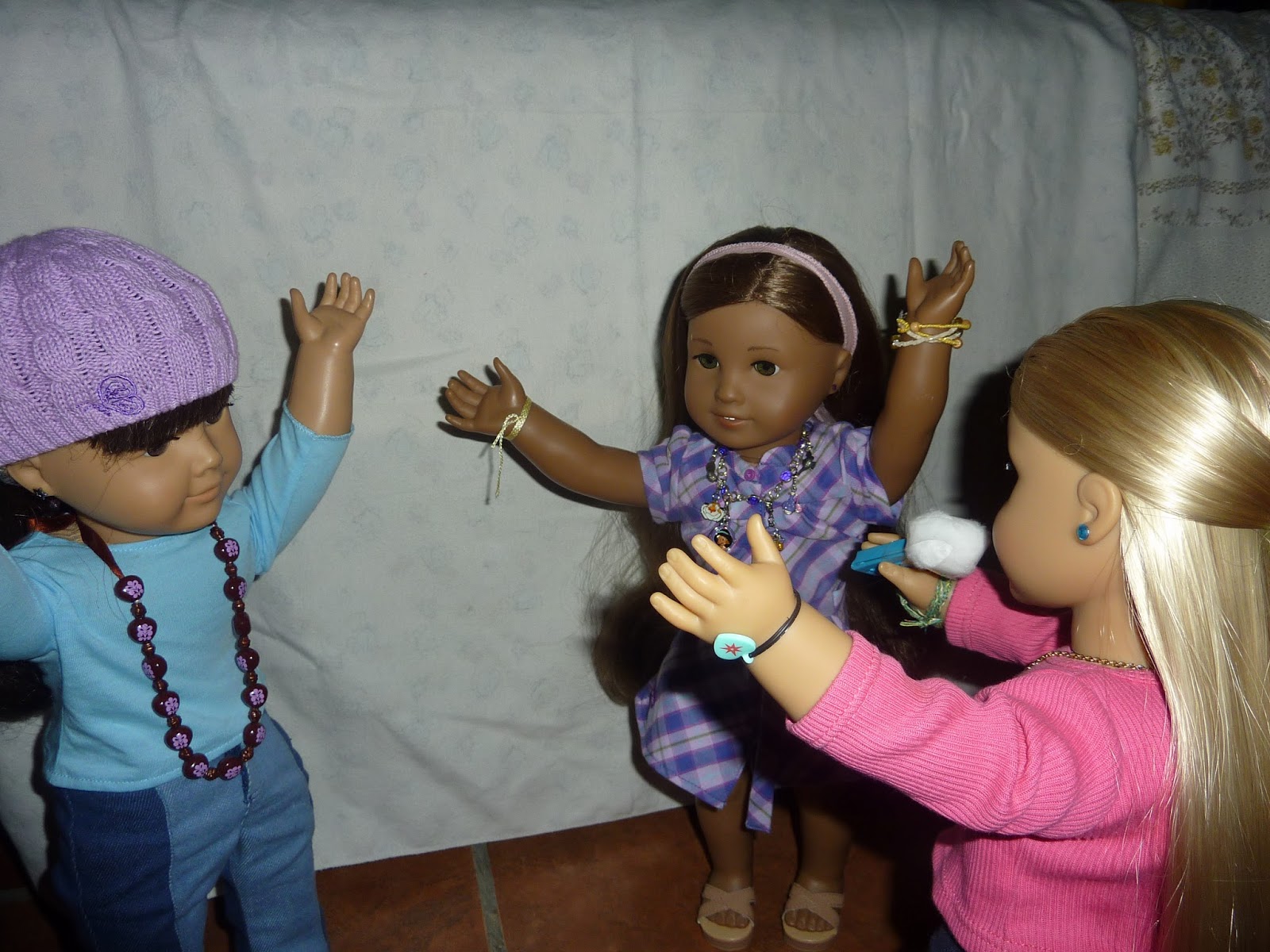 Hello!!! I feel horrible for not posting lately but this is the first chance I got to get my hands on a computer! You see Mum is traveling abroad and picking up Sam and Jules but she is gone for two months and left me with her cousin's dolls and with all the doll clothes which means I am stuck here and not much happens when Mum leaves so not much blogging. ;( I sincerely apologize for this. However possibly Mum's cousin can take some pictures for me for the blog!! Anyway that's just an update for ya!! Ttyl!!!